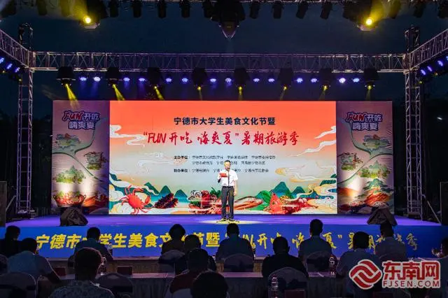 6月11日晚,寧德市大學(xué)生美食文化節(jié)暨“FUN開吃+嗨爽夏”暑期旅游季在寧德師范學(xué)院舉辦。東南網(wǎng)記者 葉伏國 攝 本次活動以美食為媒,由寧德市文旅局、寧德市委網(wǎng)信辦、寧德市教育局、寧德市商務(wù)局、共青團(tuán)寧德市委、寧德師范學(xué)院資產(chǎn)后勤管理處共同主辦,旨在充分發(fā)揮青年學(xué)子在美食文化傳播中的中堅(jiān)力量,通過線上線上相結(jié)合的方式,多維度展示寧德的山海之秀、物產(chǎn)之盛、煙火之美,讓“山海寧德”旅游品牌更加深入人心。