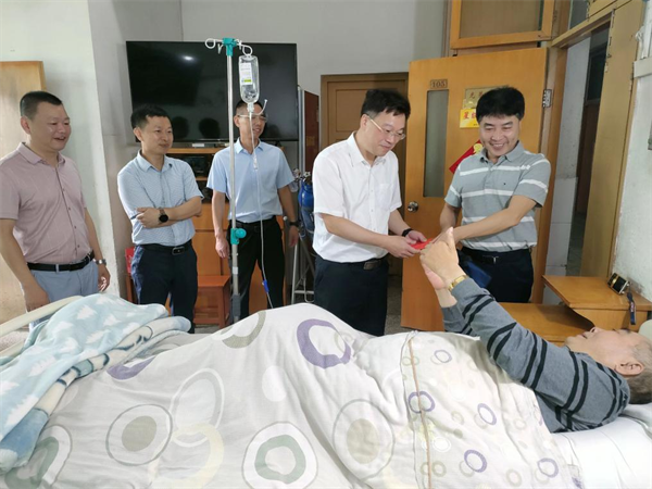 7月31日,蔡靜南副廳長一行前往榮軍醫(yī)院病房逐一看望榮軍休養(yǎng)員并送上慰問金