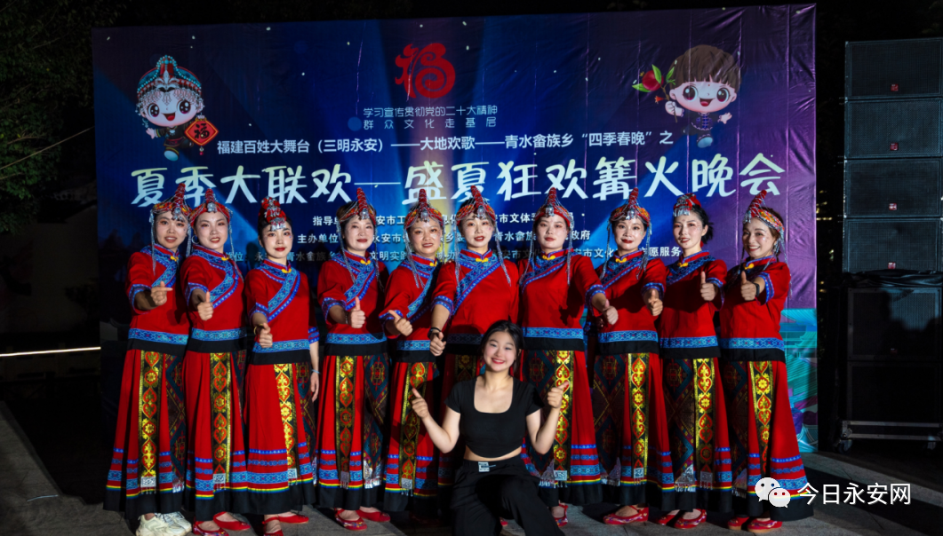 游客與畬族人民激情互動 在光怪陸離的各色霓虹燈映襯下,燈光秀、歌舞展演、特色美食……讓畬鄉(xiāng)夜生活散發(fā)出勃勃生機、活力四射。入夜的畬鄉(xiāng)街頭巷尾再次迎來了熟悉的煙火氣,鳳凰廣場周圍成為了畬鄉(xiāng)特色小吃的聚集地。“自篝火節(jié)啟動以來,來了好多游客,人氣明顯提升,尤其是周末,單單我這個燒烤,最多一個晚上就可以賣到1000多元呢!”正在燒烤攤位忙個不停的攤主鐘大叔笑瞇瞇地說。 據(jù)了解,從7月8日開始至8月26日的每個周五、周六晚上,青水畬寨景區(qū)都會如期開展“篝火嘉年華”消夏旅游活動。以此為契機,青水畬族鄉(xiāng)不斷創(chuàng)新“夜游”新模式,搶抓夏日“夜經(jīng)濟”消費復(fù)蘇,精心打造特色畬寨景區(qū)和夜間消費聚集區(qū),大力提質(zhì)升級“夜”體驗項目,為拉動鄉(xiāng)村“夏日經(jīng)濟”、助力鄉(xiāng)村文旅融合發(fā)展提供了“新路徑”。