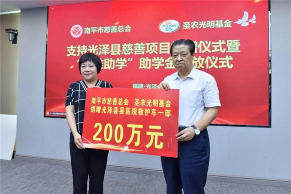近日,全國(guó)模范退役軍人、福建圣農(nóng)集團(tuán)董事長(zhǎng)傅光明再次向社會(huì)捐出580萬(wàn)元,用于以下5類慈善項(xiàng)目:一是光澤縣6個(gè)村(社區(qū))“長(zhǎng)者食堂”運(yùn)營(yíng)補(bǔ)助;二是5個(gè)鄉(xiāng)鎮(zhèn)12個(gè)村農(nóng)田灌溉、村道硬化、鄉(xiāng)村美化項(xiàng)目;三是光澤縣創(chuàng)建省級(jí)文明城市宣傳;四是光澤縣醫(yī)院購(gòu)買救護(hù)車;五是資助10位家庭困難的2023屆大學(xué)生每年2萬(wàn)元、連續(xù)資助4年,直至完成大學(xué)學(xué)業(yè)。