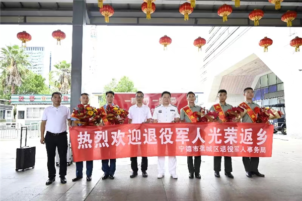 在莆田動(dòng)車站出站口設(shè)立醒目的退役士兵接待服務(wù)站,工作人員為剛出站的返鄉(xiāng)退役軍人披綬帶,講解退役士兵返鄉(xiāng)報(bào)到須知,宣傳教育培訓(xùn)和就業(yè)創(chuàng)業(yè)等政策,為他們提供貼心服務(wù)?!拔页稣竞螅谎劬涂吹搅擞游覀兎掂l(xiāng)的橫幅,很感動(dòng)!這一刻我才強(qiáng)烈地感受到自己到家了。今后我們也會(huì)為家鄉(xiāng)的建設(shè)貢獻(xiàn)自己的力量!”老兵說(shuō)。 龍巖市 顯眼的標(biāo)牌,繽紛的鮮花,紅色的綬帶……為做好2023年秋季退役士兵返鄉(xiāng),長(zhǎng)汀縣退役軍人事務(wù)局精心部署,多措并舉,真正讓退役軍人感受社會(huì)的尊崇、享受軍人的榮光,激發(fā)退役軍人退伍不褪色、返鄉(xiāng)建新功的壯志和熱情。 “老兵您好!長(zhǎng)汀人民歡迎您光榮返鄉(xiāng)!”在退役老兵接站點(diǎn),長(zhǎng)汀縣退役軍人事務(wù)局工作人員和汀州退役軍人先鋒大隊(duì)熱情招呼出站的每位退役老兵?!皠傋叱龀稣究?,就感受到了家鄉(xiāng)的溫暖!真的讓我們很感動(dòng)!” 老兵緊緊地?fù)肀ё约旱募胰思?dòng)地說(shuō)道。 長(zhǎng)汀縣汀州退役軍人先鋒大隊(duì)隊(duì)員與社會(huì)愛心人士成立的愛心車隊(duì),到動(dòng)車南站迎接光榮返鄉(xiāng)退役軍人,免費(fèi)接送光榮返鄉(xiāng)退役軍人及家屬,將退役軍人送到家門口,打通回家“最后一公里”,積極營(yíng)造擁軍崇軍濃厚氛圍。 寧德市 9月1日上午,蕉城區(qū)委常委、人武部政委林曉光,副區(qū)長(zhǎng)楊泰,以及區(qū)退役軍人事務(wù)局相關(guān)負(fù)責(zé)人到寧德動(dòng)車站熱情迎接秋季首批蕉城籍返鄉(xiāng)退役軍人,為他們送上鮮花、披上綬帶,讓他們感受到“保家衛(wèi)國(guó)熱烈歡送,光榮退伍熱情相迎”的濃烈氛圍。