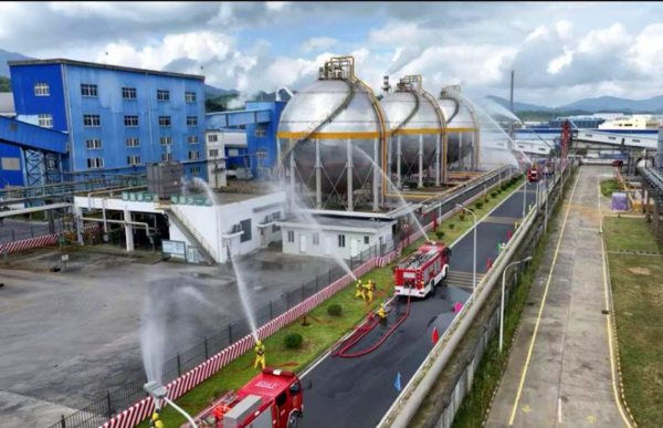 9月14日,由福建省應(yīng)急管理廳、龍巖市人民政府聯(lián)合主辦的2023年福建省危險(xiǎn)化學(xué)品生產(chǎn)安全事故綜合應(yīng)急演練在龍巖市上杭縣甕福紫金化工股份有限公司舉行,龍巖市人民政府副市長簡洪坤擔(dān)任演練總指揮。福建省應(yīng)急管理廳副廳長黃德學(xué)現(xiàn)場觀摩并講話。 此次演練模擬甕福紫金化工股份有限公司一液氨罐在常規(guī)檢修過程中因法蘭老化突發(fā)泄漏事故,導(dǎo)致現(xiàn)場多名檢修人員被困。公司接到報(bào)告后,立即啟動企業(yè)應(yīng)急預(yù)案,調(diào)配人員進(jìn)行現(xiàn)場先期處置,并上報(bào)上杭縣人民政府和相關(guān)部門;上杭縣政府第一時(shí)間組織相關(guān)部門和救援力量趕赴事故地點(diǎn),成立現(xiàn)場救援指揮部,開展救援工作并上報(bào)險(xiǎn)情。龍巖市政府根據(jù)險(xiǎn)情報(bào)告研判,認(rèn)為危險(xiǎn)化學(xué)品泄漏可能對園區(qū)周邊企業(yè)及鄉(xiāng)鎮(zhèn)造成嚴(yán)重危害,提升事故響應(yīng)等級為《龍巖市生產(chǎn)安全事故應(yīng)急預(yù)案》Ⅲ級響應(yīng),并請求省應(yīng)急廳增援。省應(yīng)急廳調(diào)派福建省?;瘧?yīng)急救援泉州石化隊(duì)、福建省危化應(yīng)急救援聯(lián)合石化隊(duì)兩支專業(yè)?;?duì)伍,趕赴現(xiàn)場開展堵漏作業(yè),經(jīng)過約一個(gè)小時(shí)的緊張搶修,完成了堵漏作業(yè)。 演練現(xiàn)場共設(shè)置綜合協(xié)調(diào)組、專家技術(shù)組、事故救援組、安全保衛(wèi)組、醫(yī)療救護(hù)組、善后處理組、宣傳組和環(huán)境監(jiān)測組等8個(gè)小組,模擬了事故信息報(bào)送、預(yù)案啟動、噴水消釋、化學(xué)品泄漏圍堵、緊急關(guān)閥、人員搜救、治療受困昏迷人員、后期清消及環(huán)境監(jiān)測等多個(gè)實(shí)戰(zhàn)環(huán)節(jié),完整展示了液氨泄漏應(yīng)急處置全過程。 演練按照政企預(yù)案銜接和協(xié)調(diào)聯(lián)動的要求,有效檢驗(yàn)了企業(yè)先期處置能力,各級各部門、各專業(yè)救援隊(duì)伍的應(yīng)急保障能力,尤其是鍛煉了省級危險(xiǎn)化學(xué)品應(yīng)急救援隊(duì)伍的跨區(qū)域作戰(zhàn)能力,進(jìn)一步強(qiáng)化了政企應(yīng)急預(yù)案的可操作性和實(shí)用性,提升了企業(yè)和部門應(yīng)急救援能力。
