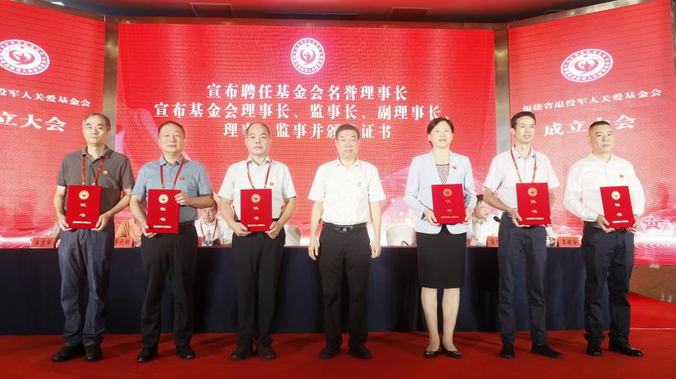 羅慶春傳達(dá)了省領(lǐng)導(dǎo)對成立基金會的批示精神。宣讀基金會第一屆名譽(yù)理事長、理事長、監(jiān)事長、副理事長名單并頒發(fā)證書。福建圣農(nóng)集團(tuán)董事長傅光明為基金會第一屆名譽(yù)理事長、鄭敏同志為基金會第一屆理事長、方彥國同志為基金會第一屆監(jiān)事長。他說,省委、省政府領(lǐng)導(dǎo)高度重視、大力支持基金會成立,省退役軍人事務(wù)廳作為基金會主管單位,希望基金會大力弘揚“軍愛民、民擁軍”的光榮傳統(tǒng),傳承愛心火炬,厚植愛軍情懷;大力推廣實施“精準(zhǔn)服務(wù)工作法”,創(chuàng)造出更多優(yōu)質(zhì)公益品牌新項目,著力解決退役軍人普遍關(guān)注的急難愁盼問題,爭取更多有識之士和愛心企業(yè)家為基金會獻(xiàn)計出力;健全完善內(nèi)部運行機(jī)制,規(guī)范資金管理使用,科學(xué)辦事、民主辦事、依法辦事,讓每一份愛心善意都及時精準(zhǔn)得到落實,助力全省退役軍人工作高質(zhì)量發(fā)展。