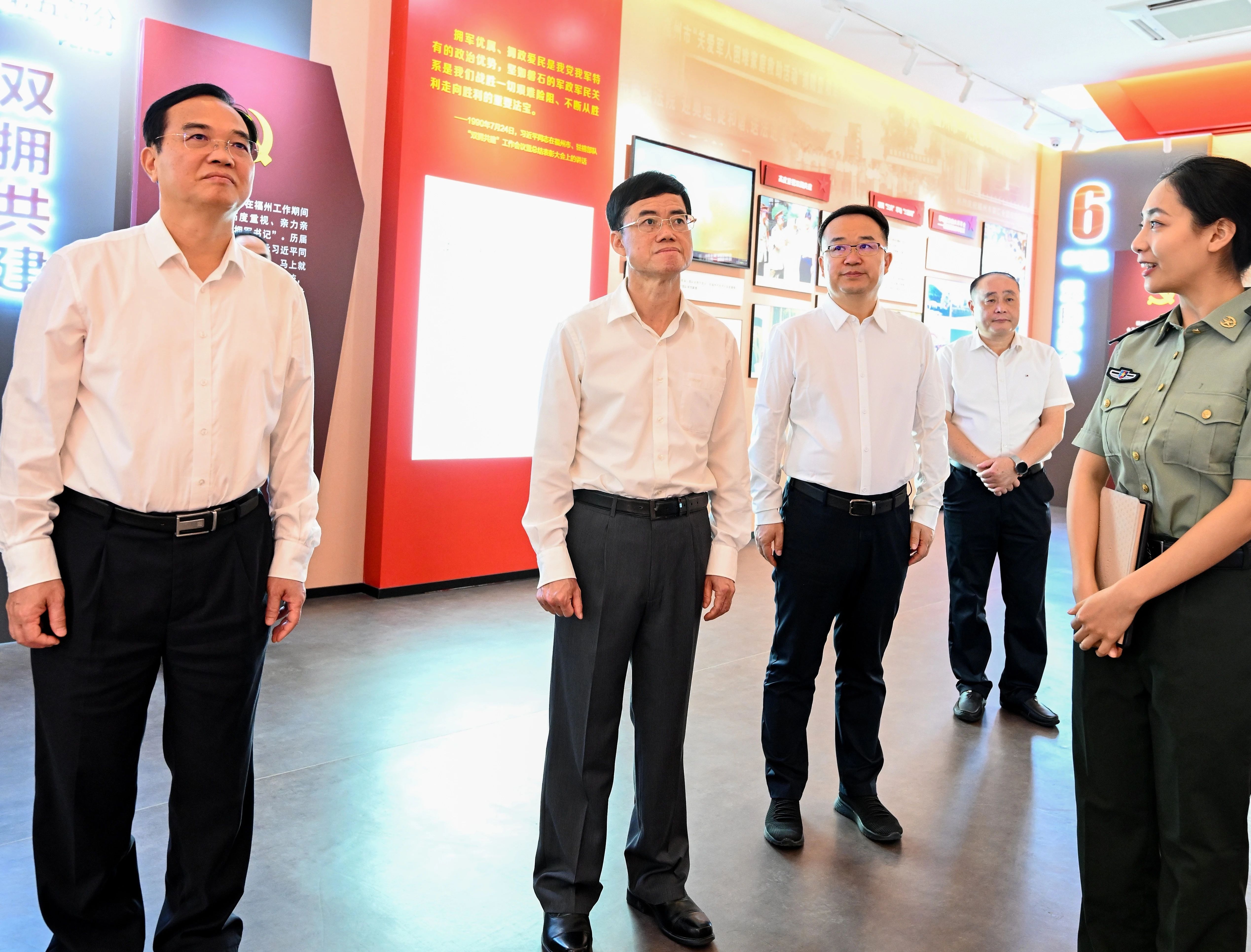 在駐連江某部隊,裴金佳深入了解部隊光榮歷史,親切慰問基層官兵。在福州警備區(qū)黨管武裝(雙擁)展覽館,裴金佳在一幅幅展板前駐足,深入了解習(xí)近平總書記在榕工作期間抓黨管武裝、雙擁工作的重大理念和重大實踐。他強調(diào),各級各有關(guān)部門要傳承弘揚雙擁光榮傳統(tǒng),全力服務(wù)駐地部隊,為部隊遂行各項任務(wù)提供堅實保障。