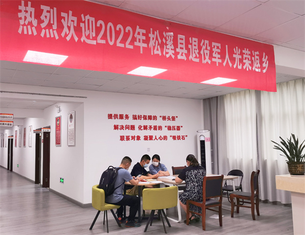 2022年9月2日,松溪縣退役軍人服務(wù)中心工作人員為秋季返鄉(xiāng)退役軍人辦理手續(xù) 挖掘保障型公益崗位為112名傷、病、殘、無學歷、年齡大就業(yè)困難的退役士兵安排就業(yè)。退役士兵社保接續(xù)工作圓滿完成,3000余人享受政策紅利,醫(yī)保補繳進入常態(tài)化辦理階段。組織參加職業(yè)技能培訓211人、學歷教育3207人,發(fā)放教育培訓補助經(jīng)費86.78萬元。首創(chuàng)“適應(yīng)性培訓+創(chuàng)業(yè)培訓+招聘會”的退役士兵適應(yīng)性培訓模式,南平市已組織2015名退役士兵參訓。創(chuàng)新“一站式”退役軍人創(chuàng)業(yè)貸款服務(wù)機制,與郵儲銀行開展“郵軍貸”戰(zhàn)略合作,發(fā)放退役軍人(企業(yè))貸款487筆、1.52億元。 在優(yōu)撫褒揚上筑就堅實的“根基” 落實退役軍人和其他優(yōu)撫對象的撫恤優(yōu)待政策,每年為優(yōu)撫對象發(fā)放定期生活補助,在足額落實省上標準的同時,按4%自然增長率提高補助標準。切實保障重點優(yōu)撫對象醫(yī)保全覆蓋,其中1—6級殘疾軍人全部納入城鎮(zhèn)職工基本醫(yī)療保險范圍。部分重點優(yōu)撫對象在醫(yī)保報銷和大病救助基礎(chǔ)上,按規(guī)定繼續(xù)享受退役軍人事務(wù)部門的醫(yī)療補助。積極做好義務(wù)兵家屬優(yōu)待金發(fā)放,全市發(fā)放義務(wù)兵家屬優(yōu)待金7600余萬元。