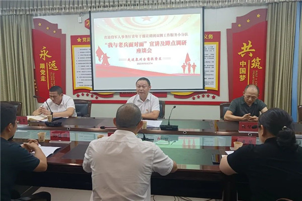 開展雙擁工作座談 最后,調(diào)研組一行在洛陽鎮(zhèn)人民政府會議室互動交流并聽取我區(qū)雙擁工作相關(guān)情況匯報。一是雙擁亮點(diǎn)特色突出。“我與老兵面對面”宣講實(shí)踐活動、“軍人退役一件事”兩項工作任務(wù)被省、市納入縣(市、區(qū))級試點(diǎn)宣傳推廣。二是擁軍支前持續(xù)加強(qiáng)。開展“軍民情”共建活動,深化“雙擁在基層”活動,加大隨軍家屬就業(yè)扶持力度。三是保障體系不斷完善。組織召開區(qū)、鎮(zhèn)退役軍人事務(wù)工作會議,在各級退役軍人服務(wù)中心(站)設(shè)置窗口,設(shè)立巡回辦案點(diǎn)。四是政策落實(shí)持續(xù)推進(jìn)。落實(shí)撫恤優(yōu)待政策,扎實(shí)推進(jìn)優(yōu)待證申領(lǐng)發(fā)放工作,安置工作圓滿完成。五是雙擁活動持續(xù)深化。擁軍組織不斷擴(kuò)大,擁軍平臺不斷規(guī)范,積極探索“雙擁+志愿服務(wù)”。