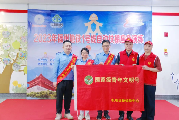 福建省特種設(shè)備檢驗(yàn)研究院機(jī)電設(shè)備檢驗(yàn)中心青年文明號(hào)在地鐵站開展自動(dòng)扶梯應(yīng)急救援演練活動(dòng)。