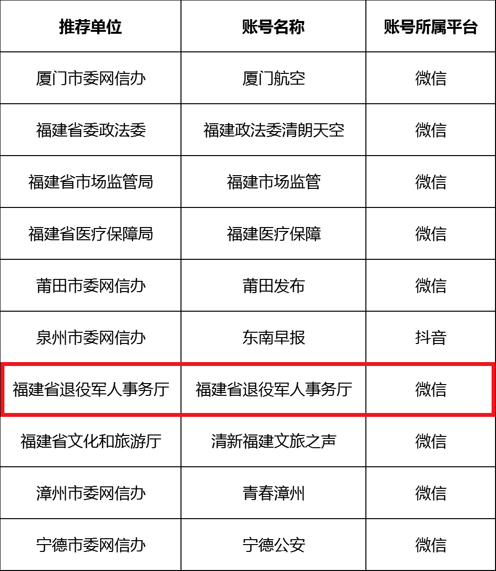 省退役軍人事務(wù)廳賬號在列!2023年福建省“走好網(wǎng)上群眾路線”十佳賬號公示