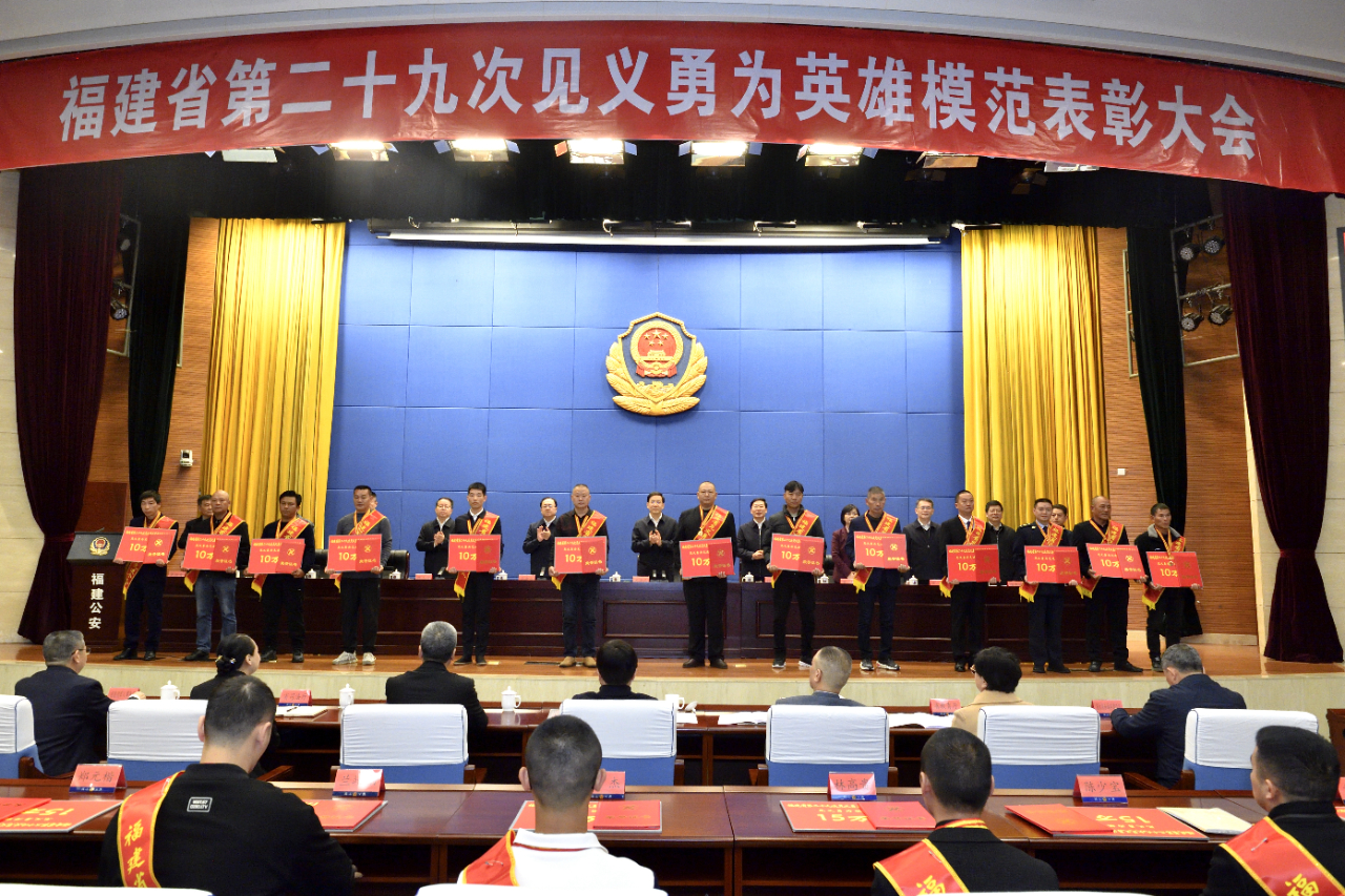 12月27日,福建省第二十九次見義勇為英雄模范表彰大會在福州召開。省委常委、政法委書記黃海昆,省人大常委會副主任檀云坤,副省長、省公安廳廳長、省見義勇為人員獎勵和保護工作委員會主任李建成,省政協(xié)副主席黃玲出席會議。