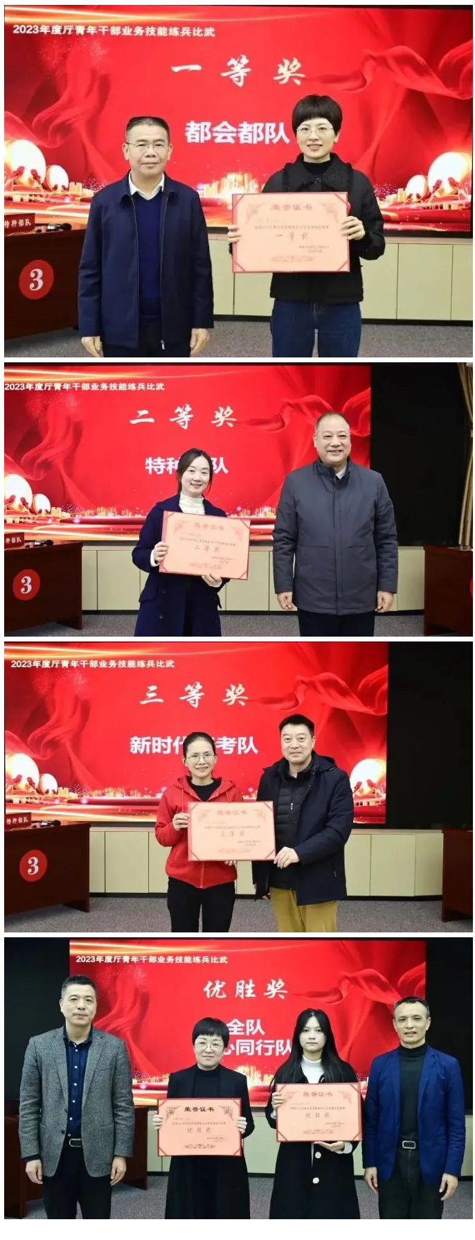 羅慶春指出,在省退役軍人事務廳成立五周年之際,開展青年干部業(yè)務技能練兵比武,切實提高干部業(yè)務能力,是全面貫徹落實習近平總書記關于退役軍人工作重要論述的有效抓手,是貫徹落實《退役軍人保障法》等一系列退役軍人法律法規(guī)的重要途徑,也是轉化運用主題教育成果、全面實施“精準服務工作法”的具體行動。要通過業(yè)務技能練兵比武,加強干部政策法律知識的學習,熟練掌握《退役軍人保障法》《烈士褒揚條例》等重要法律法規(guī)條款,做到應知應會,精準運用;要通過業(yè)務技能練兵比武,提高分析研判問題能力,以學促干,以練促干,以案促用,學用結合,把“學”的成效切實轉化為“干”的能力,促進業(yè)務技能和訴求化解大提升;要通過業(yè)務技能練兵比武,推動工作創(chuàng)新發(fā)展,在學習中解剖麻雀、交流提高,在實踐中破題解題、增長才干,把工作抓實、把基礎打牢,用創(chuàng)新的思路、系統(tǒng)的思維,為廣大退役軍人提供更為精準高效的服務。 26日上午舉行全員閉卷個人賽,考試內容涵蓋黨的二十大精神、習近平法治思想、習近平總書記關于退役軍人服務保障工作重要論述,以及退役軍人教育培訓、就業(yè)安置、撫恤優(yōu)待、信訪接待、權益維護、烈士褒揚和軍休服務等領域的法律法規(guī)和政策要點。當天下午,模擬接訪賽舉行,通過模擬接訪情景,著重考察干部的業(yè)務素養(yǎng)、臨場應變和溝通能力。 27日上午,舉辦現(xiàn)場知識競賽,由青年干部組成的5支參賽隊伍同臺競技,現(xiàn)場設置必答題、團隊答題、風險挑戰(zhàn)題、現(xiàn)場模擬接訪四個環(huán)節(jié)。經過激烈角逐,精彩比拼,“都會都隊”榮獲一等獎,“特種部隊”榮獲二等獎,“新時代趕考隊”榮獲三等獎,“全隊”“同心同行隊”榮獲優(yōu)勝獎。