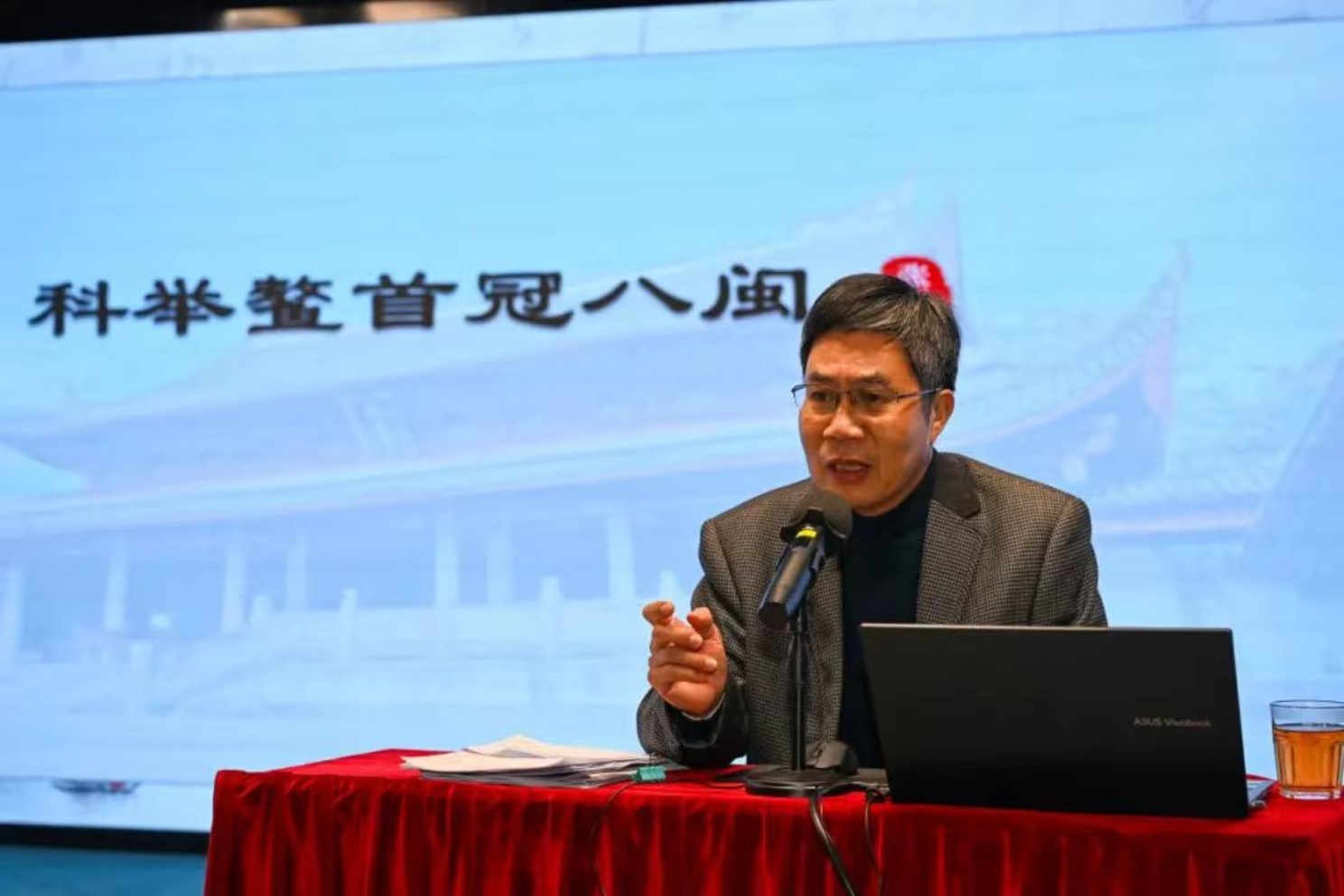 本期講壇以《科舉鰲首冠八閩》為題,邀請福州市博物館館長、文博研究館員、福州大學(xué)人文學(xué)院客座教授、福建省福文化專家?guī)鞂<覐堈裼褡髦黝}宣講。張振玉從中國古代選官制度切入,引出科舉制度的發(fā)展與影響、科舉制度與福州教育,帶領(lǐng)大家深入了解科舉制度的發(fā)展,剖析科舉制度對福州教育以及書院文化的影響。