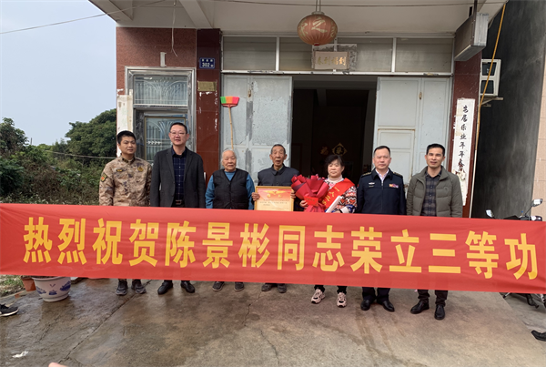 陳岱鎮(zhèn)南村沿途吸引了不少群眾駐足觀看,拍手稱贊?!瓣惥氨蛲驹?023年度工作中表現(xiàn)突出,榮立戰(zhàn)備訓(xùn)練三等功一次。特此喜報(bào)。恭喜!恭喜!”軍地領(lǐng)導(dǎo)向陳景彬家屬致以崇高的敬意和親切的慰問(wèn)。陳景彬的爺爺陳太順自豪地向領(lǐng)導(dǎo)介紹,景彬從小就有軍旅夢(mèng),他懷揣著對(duì)軍營(yíng)的向往,2017年9月入伍,現(xiàn)服役于武警某部特戰(zhàn)支隊(duì),服役期間連續(xù)四年被評(píng)為“四有”優(yōu)秀個(gè)人。母親激動(dòng)地說(shuō)道:“這份喜報(bào)是我們最好的新年禮物”。