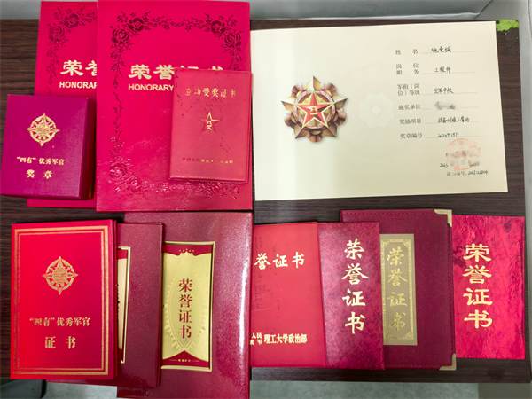 在云陵鎮(zhèn)渡頭嘉園,橫幅招展、鑼鼓喧天。軍地領(lǐng)導(dǎo)為三等功獲得者鄭歡騰家屬頒發(fā)立功喜報(bào),贈(zèng)送鮮花及慰問(wèn)金?!拔覂鹤雍苣艹钥?,家里存放的榮譽(yù)證書有七八本?!闭劶皟鹤尤〉玫臉s譽(yù),母親張春梅臉上洋溢著滿臉笑容。