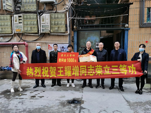 慰問組與王耀增父母合影 “現(xiàn)在政府送喜報(bào)儀式這么隆重,讓我們心里暖暖的?!苯拥搅⒐ο矆?bào),王耀增父親高興地說道。 一人立功,全家光榮!2月2日,龍海區(qū)退役軍人事務(wù)局聯(lián)合石碼街道,敲鑼打鼓為榮立個人三等功的現(xiàn)役軍人王耀增家庭送去立功喜報(bào)。滿滿的送喜報(bào)儀式讓軍屬們倍感榮耀,軍屬們都說,感受到了實(shí)實(shí)在在的尊崇,心里暖暖的。 王耀增,2012年考入海軍大連艦艇學(xué)院,入伍已有11年。作為部隊(duì)技術(shù)骨干,他敢于擔(dān)當(dāng),高標(biāo)準(zhǔn)完成了上級賦予的各項(xiàng)任務(wù),多次受到部隊(duì)表揚(yáng)和嘉獎;曾參加??章?lián)合戰(zhàn)備警巡和聯(lián)合演訓(xùn)、紀(jì)念抗戰(zhàn)勝利70周年閱兵活動等。2023年12月,因成績突出,榮立戰(zhàn)備訓(xùn)練三等功、“四有”優(yōu)秀軍官。