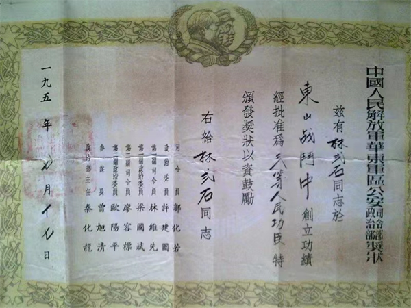 王耀增參加演練 “耀增的外公也是一名軍人,曾在1950年參加?xùn)|山戰(zhàn)斗中榮立三等功,但是我們都不知道,直到去年他老人家去世我們整理遺物時才發(fā)現(xiàn)這張喜報(bào)?!蓖跻龅哪赣H激動地說。