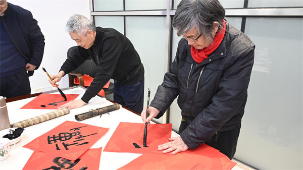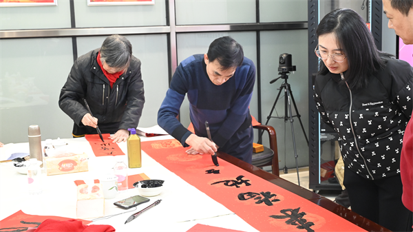 “全家平安添百福,滿門和順納千祥”“一元復(fù)始龍?jiān)鰵q,萬物生輝燕扳春”……活動(dòng)現(xiàn)場(chǎng)紅聯(lián)鋪張,墨香彌漫,書法家們下筆如行云流水,或蒼勁有力,或秀氣內(nèi)斂,將濃濃的情誼和真誠的祝福洋溢在字里行間。不一會(huì)兒,一張張帶著美好祝愿的“?!弊?,一幅幅寓意吉祥的春聯(lián)便呈現(xiàn)在大家面前。前來迎春納福的干部職工們絡(luò)繹不絕,感受這份獨(dú)特的文化關(guān)懷,同時(shí)認(rèn)真挑選心儀的對(duì)聯(lián)和“?!弊郑ハ嘟涣髌渲械脑⒁?,現(xiàn)場(chǎng)一派歡樂祥和的氣氛。