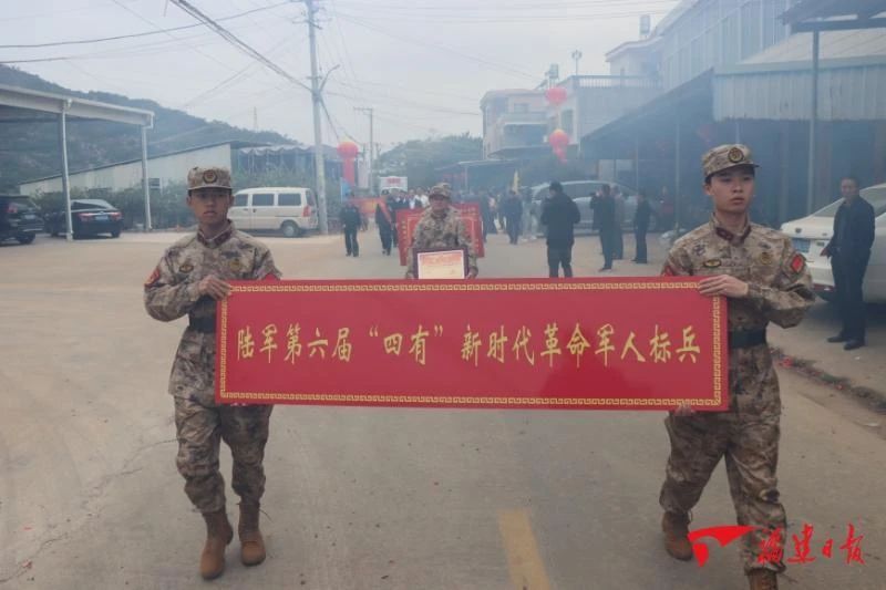 2月23日,由漳浦縣縣長吳丁順等一行人組成的軍地送喜報(bào)慶功團(tuán)隊(duì),一路敲鑼打鼓、鞭炮齊鳴,把“陸軍第六屆‘四有’新時(shí)代革命軍人標(biāo)兵”喜報(bào)送到林莉君家中。在送喜報(bào)儀式現(xiàn)場(chǎng),漳浦縣領(lǐng)導(dǎo)代表分別為林莉君及其家人佩戴綬帶、送上慰問金、鮮花及暖心祝福,并合影留念。