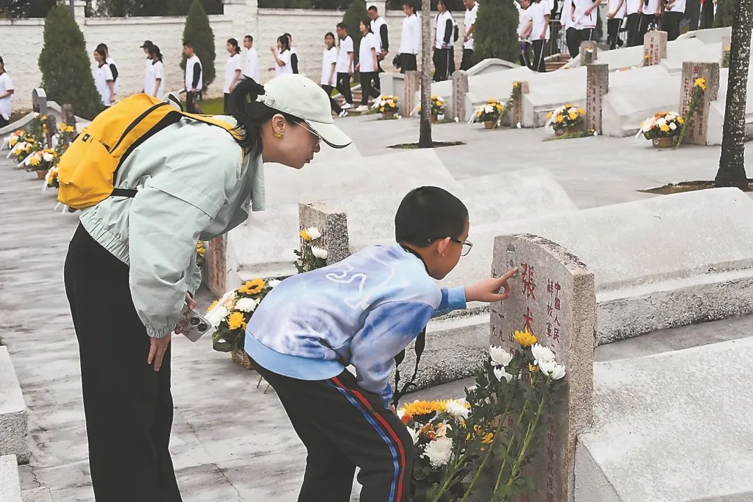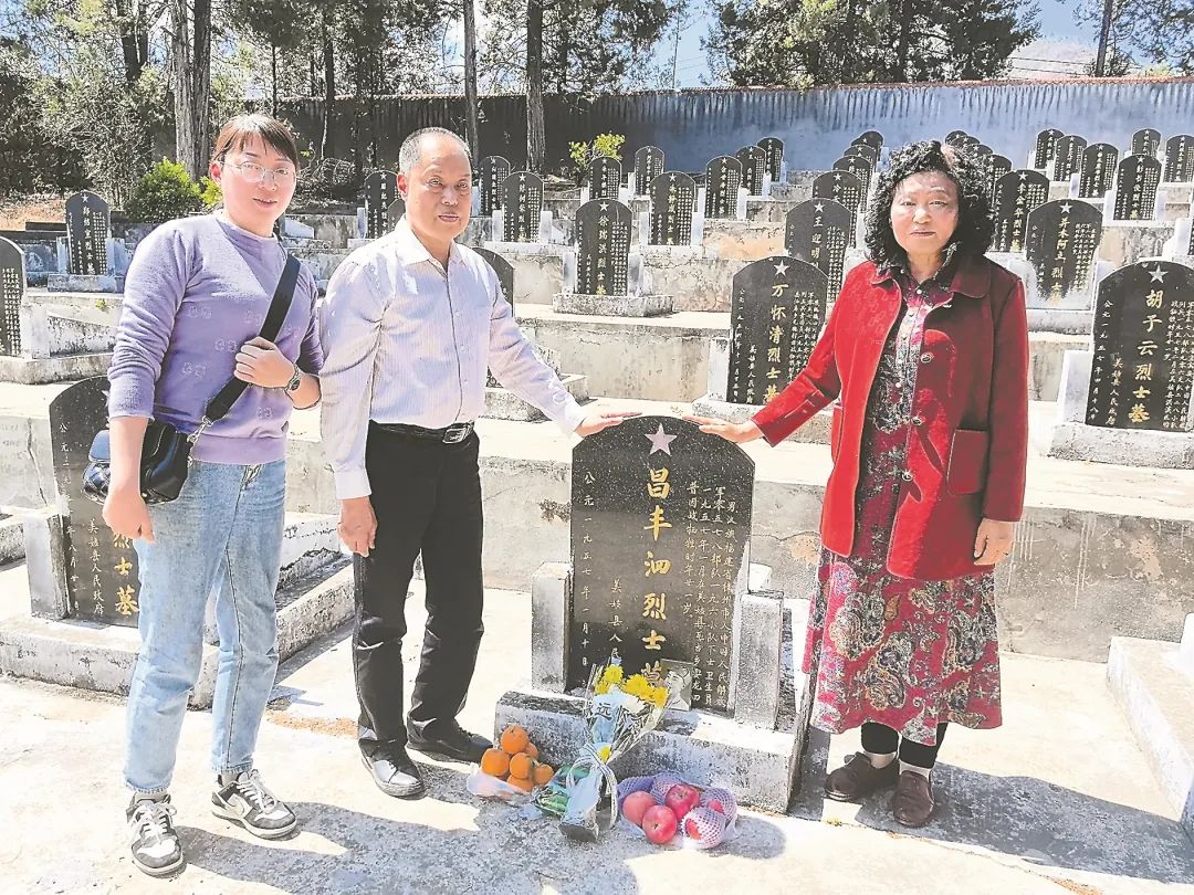 清明前夕,昌豐泗烈士的侄子昌煜(中)在烈士陵園為叔叔掃墓 銘記“英烈心”,點(diǎn)亮“福建紅” 福建作為革命老區(qū),具有黨史事件多、紅色資源多、革命先輩多的獨(dú)特紅色基因,全省登記在冊的烈士近5萬位。用心用情弘揚(yáng)英烈精神、慰藉英烈忠魂、傳承紅色基因,正成為全社會的良好風(fēng)尚。