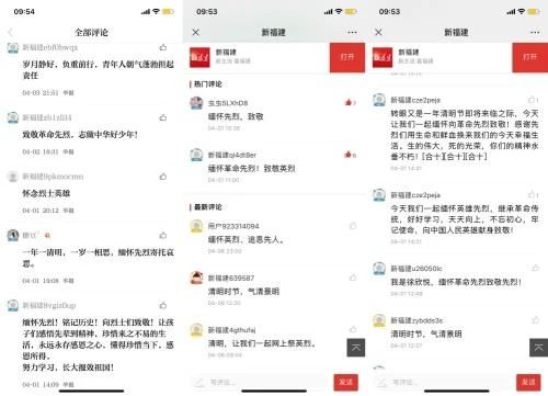 活動(dòng)部分頁(yè)面截圖 本次活動(dòng)覆蓋了福建省市級(jí)以上烈士紀(jì)念設(shè)施,參與者能夠自主選擇想要前往的紀(jì)念地,進(jìn)行虛擬參觀。通過(guò)這種創(chuàng)新的方式,網(wǎng)友們得以深入了解英烈們的英勇事跡和崇高精神,仿佛親身置身于那些歷史性的瞬間,感受英烈們?yōu)閲?guó)家和人民所做出的偉大犧牲?;顒?dòng)一經(jīng)上線,便迅速引發(fā)了社會(huì)各界的熱烈反響。網(wǎng)友紛紛涌入新福建平臺(tái),通過(guò)參與活動(dòng)、留言互動(dòng)等方式,表達(dá)對(duì)英烈的敬意與懷念。 “致敬革命先烈,矢志成為中華好少年!”“歲月靜好,因有人負(fù)重前行,青年人朝氣蓬勃,勇?lián)鷷r(shí)代責(zé)任。”類(lèi)似的留言在評(píng)論區(qū)刷屏,每一句都凝聚著廣大網(wǎng)友的深厚情感與崇高敬意,很快留言區(qū)就變成一片情感交流的熱土。