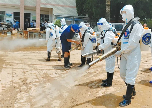 退役軍人在災(zāi)區(qū)開展消殺工作