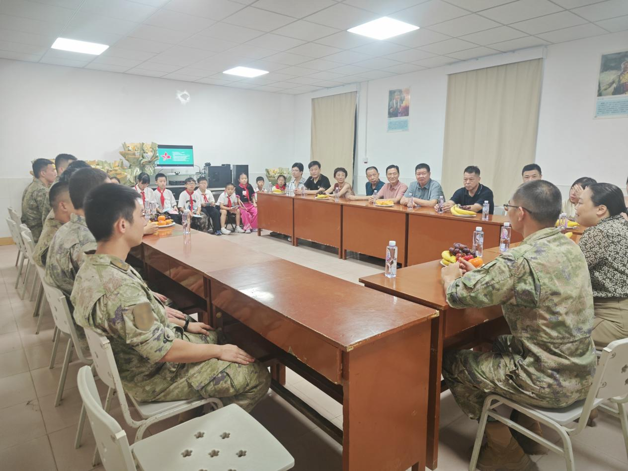 隨后,大家走進接待室。開展了一場“贊老兵 憶往昔”的茶話會 ,退休干部、現(xiàn)役軍人和少先隊員坐在一塊,退休干部向大家講述著自己在部隊時的故事,和對年輕官兵的勉勵。退休干部何方對官兵們說:“當兵的日子有苦有累,但更多的是榮耀和成長。希望你們珍惜現(xiàn)在的好條件,不忘初心、牢記使命,為黨和人民貢獻自己的力量”。這傳遞的不僅是對軍人的敬愛,同時也是對退休老干部的尊崇,展現(xiàn)了軍人精神的血脈傳承。