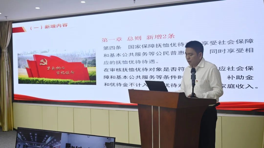 廳優(yōu)撫褒揚處姚云宣講《烈士褒揚條例》 據(jù)悉,省廳組織的三支青年干部服務(wù)小分隊近期將陸續(xù)前往全省各地基層一線開展宣講。 廳機關(guān)和省烈保中心干部職工在主會場,其他所屬單位干部職工在各分會場以視頻形式參加活動。 |