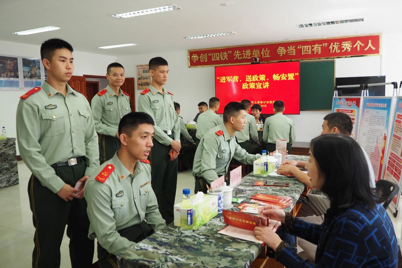 為幫助部隊官兵詳細了解《退役軍人安置條例》,準確掌握退役軍人安置就業(yè)政策,近日,省退役軍人事務廳安置就業(yè)處、省退役軍人人才開發(fā)中心業(yè)務骨干走進武警駐閩部隊,開展4場“送政策進軍營”活動。