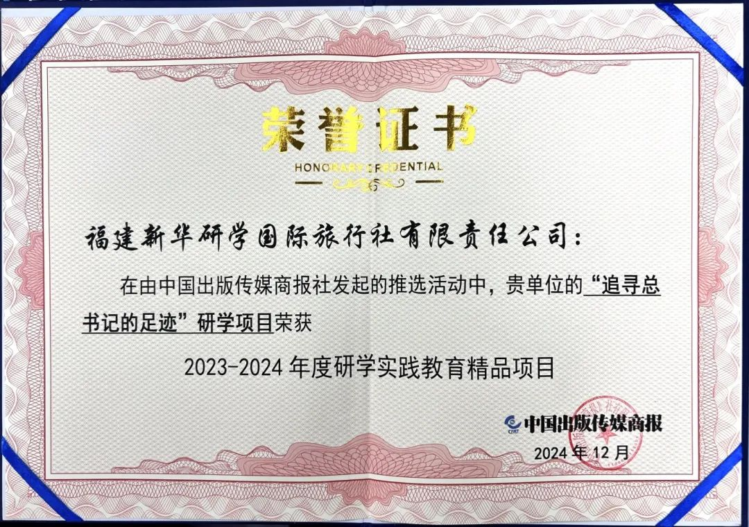 活動期間,舉行了“2023-2024年度研學實踐教育系列推選活動”總結表彰,福建新華研學國際旅行社有限責任公司榮獲“研學實踐教育服務示范單位”,福建新華發(fā)行集團福州分公司安泰圖書城研學團隊榮獲“研學實踐教育優(yōu)秀服務團隊”,福建新華研學國際旅行社有限責任公司的【追尋總書記的足跡研學項目】榮獲“研學實踐教育精品項目”。 2024 獲獎精彩瞬間 2023-2024年度研學實踐教育服務示范單位