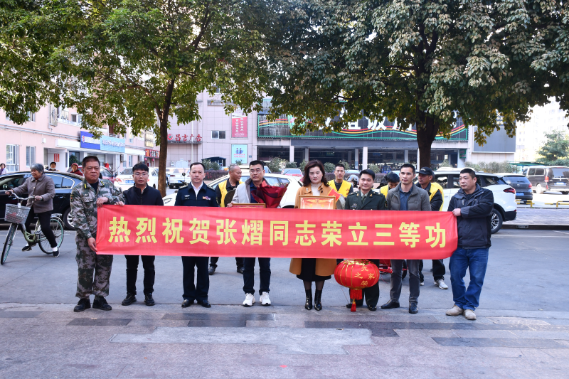 軍地領(lǐng)導(dǎo)與功臣視頻連線道喜 據(jù)悉,張曉燦,1989年3月出生,2007年9月入伍,現(xiàn)任陸軍某部科長。他出生于一個軍人家庭,其父親張民揚(yáng)曾是位空軍,兩個舅舅一位是海軍,一位是武警。受家人影響,從小立志從軍報國。入伍之后,他立足本職崗位,扎實務(wù)實,履職盡責(zé),成績突出,先后被表彰為優(yōu)秀學(xué)員、優(yōu)秀帶兵骨干、優(yōu)秀黨務(wù)工作者、優(yōu)秀共產(chǎn)黨員、優(yōu)秀基層干部,獲得6次嘉獎、1次三等功獎勵等多項榮譽(yù)。他一步步努力實現(xiàn)心中的夢想,用一個個榮譽(yù)為軍旗增色添彩,不斷豐富自己的人生價值。 “把橫幅拉起來,鑼鼓敲起來.....”當(dāng)天,云霄縣云陵鎮(zhèn)萬城花園、建發(fā)半山御園、下坂村等地鑼鼓喧天、人潮攢動,熱鬧非凡??h人武部部長李超、政委吳南華分別帶隊,縣退役軍人事務(wù)局、人武部政工科及鄉(xiāng)鎮(zhèn)、村(社區(qū))相關(guān)人員組成送喜報小分隊,熱熱鬧鬧將喜報送達(dá)軍屬家庭。 在鑼鼓喧天的喜慶聲中,送喜報小組為榮立三等功的現(xiàn)役軍人張曉燦、吳建寧、張熠等軍屬披綬帶,頒發(fā)喜報、送上慰問金與鮮花,向他們致以新年的問候和熱烈的祝賀。 “感謝黨和政府的關(guān)懷,感謝部隊對張曉燦的培養(yǎng),作為父母為此感到驕傲和自豪,會一如既往做好孩子堅強(qiáng)后盾,不辜負(fù)黨和人民的期望?!睆垥誀N的父親張民揚(yáng)激動表示。