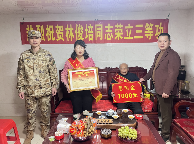 龍文區(qū)人武部、區(qū)退役軍人事務(wù)局為榮立三等功的現(xiàn)役軍人送去立功喜報(bào)