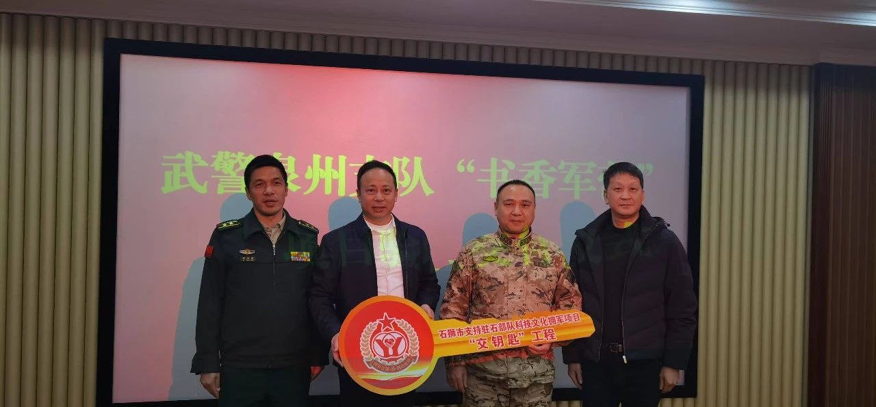 2月10日,石獅市“擁軍交鑰匙”工程——“基層中隊書香軍營”項目圓滿完成驗收并交付武警泉州支隊使用。石獅市雙擁辦主任、退役軍人事務(wù)局局長李少宗、武警泉州支隊上校政治委員余正會出席驗收交付儀式。