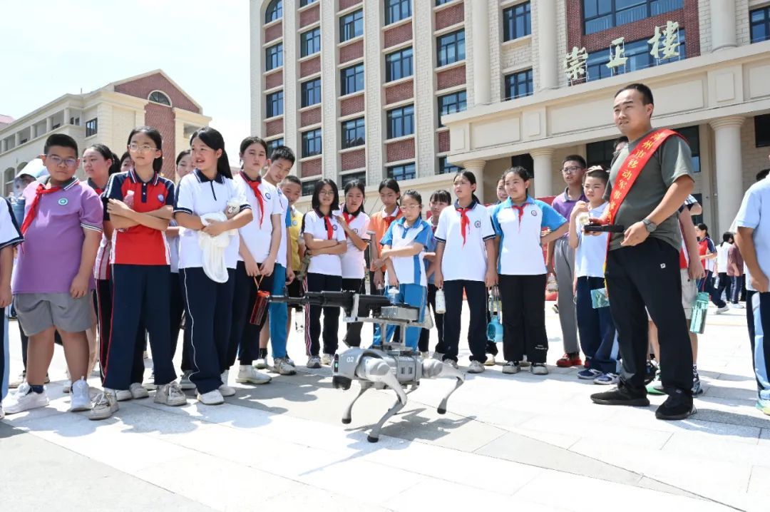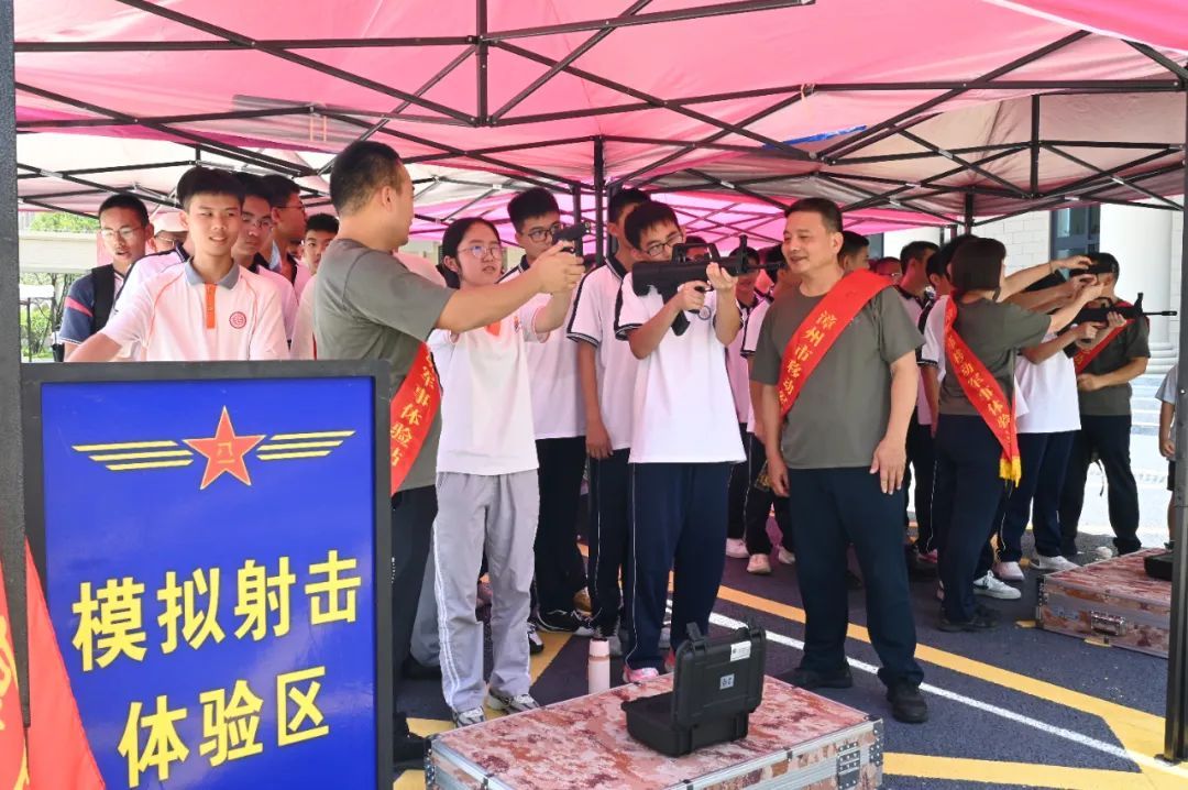 突然,“砰——”的一聲巨響回蕩在空中,瞬間點(diǎn)燃全場(chǎng)氣氛。烈日炎炎,卻絲毫阻擋不了大家的熱情。在軍事體驗(yàn)區(qū),男女學(xué)生們躍躍欲試,輪流肩扛模擬火箭筒進(jìn)行發(fā)射體驗(yàn)。緊接著,伴隨一陣“嗒嗒嗒”的模擬槍聲,一只機(jī)器狗穩(wěn)健地走入人群,靈活演示多種戰(zhàn)術(shù)動(dòng)作,立刻成為全場(chǎng)焦點(diǎn)。同學(xué)們紛紛好奇地圍上前去,伸手觸摸機(jī)器狗的“手”和“腳”,感受科技賦能國防的獨(dú)特魅力。 “我剛才模擬了中國軍人打槍的環(huán)境,我拿了95式步槍,我覺得它很重,我體會(huì)到了軍人的艱辛與不易。作為一名新時(shí)代青少年,我應(yīng)該認(rèn)真學(xué)習(xí),扛起新時(shí)代國家的重任。”高一新學(xué)黃靖航感慨道。