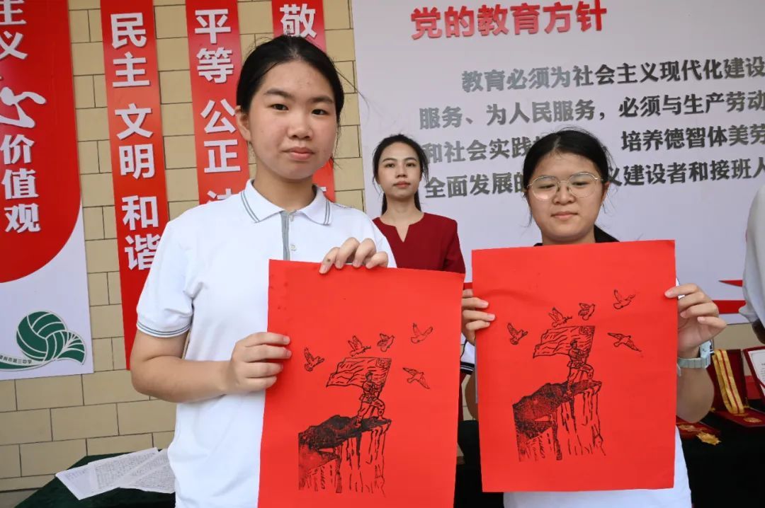 特別設(shè)置的抗戰(zhàn)主題木版年畫拓印體驗(yàn),由省級(jí)非遺傳承人現(xiàn)場(chǎng)教學(xué),同學(xué)們親手拓印,在一刷一印間將抗戰(zhàn)歷史與傳統(tǒng)文化深深烙印在心中。