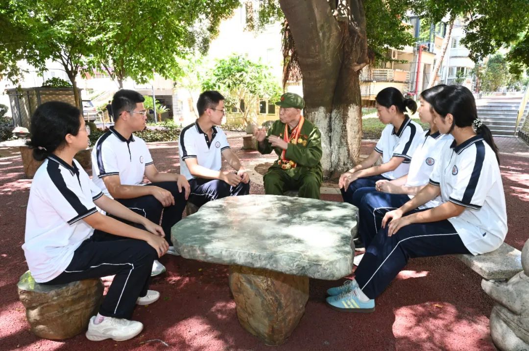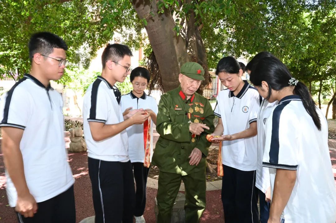 臨別時(shí),老人緊緊握住他們的手,反復(fù)叮囑:“你們要珍惜現(xiàn)在的好時(shí)光,好好學(xué)習(xí),將來成為國家的棟梁!”榕樹下,學(xué)生與老兵用軍禮向革命前輩們致敬。 這場(chǎng)相隔八十年的對(duì)話,不僅是記憶的傳遞,更是一次精神的交接。年輕的目光與滄桑的眼神在此相遇,他們彼此致意,也彼此照亮。