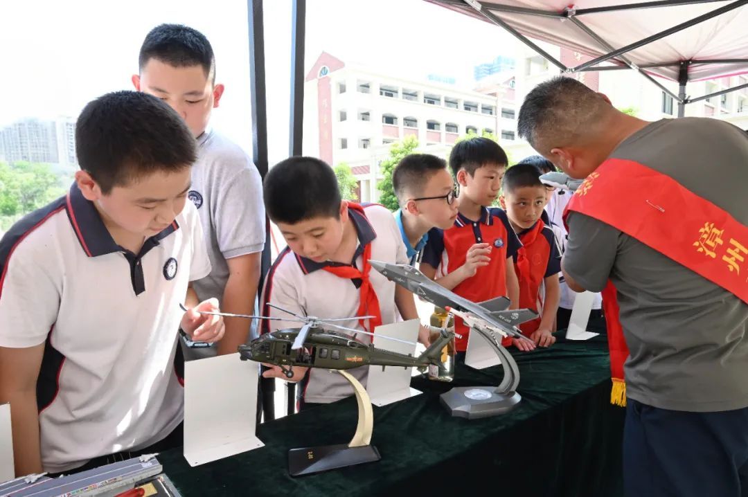 “太震撼了!”“感到特別自豪!”“再過幾天,我們就能在閱兵式上看到更先進(jìn)的裝備!”一大早,學(xué)校操場(chǎng)上的軍事體驗(yàn)區(qū)便回蕩著此起彼伏的歡呼與驚嘆。學(xué)生們緊緊簇?fù)碓凇耙苿?dòng)軍事體驗(yàn)站”周圍,專注聆聽漳州市軍休所老干部的講解,并踴躍提問、積極互動(dòng)。