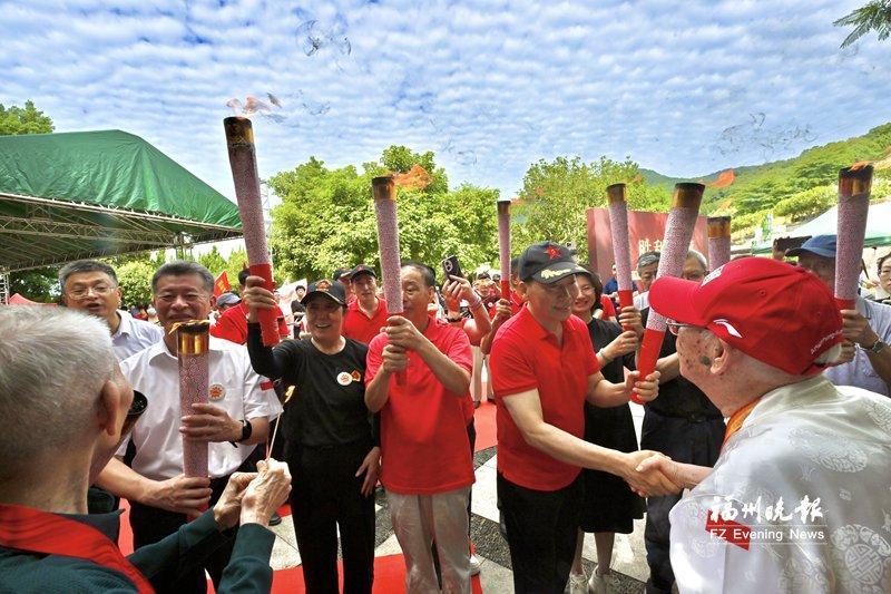 101歲的陳世明和97歲的姜汝煥引出火種,為9位抗日志士后人點燃火炬。 追憶往昔 話傳承使命 歷史的記憶需要實體的承載,精神的傳承需要后人的接續(xù)。 福建省政協(xié)副秘書長、臺盟福建省委會專職副主委許勇鐵代表活動主辦方在致辭中說:“偉大的抗戰(zhàn)精神,是中國人民彌足珍貴的精神財富,更是兩岸同胞共同的歷史記憶與精神紐帶?!?/p> 老紅軍、抗戰(zhàn)時期八路軍120師排長王玉清之子王寧表示:“兩年前,103歲的父親謝世。去世時,他唯一的遺憾是沒有看到兩岸統(tǒng)一。作為兒子,我覺得對父親最好的告慰,就是傳承紅色基因,繼承和發(fā)揚革命精神。兩岸統(tǒng)一那天,我一定會到這里告慰九泉之下的父親,這是他最想聽到的好消息,實現(xiàn)中華民族偉大復(fù)興是父親一生奮斗的目標(biāo)?!?/p> “抗戰(zhàn)時期,旅居菲律賓的愛國華僑以捐款、捐飛機、組團回國參戰(zhàn)等實際行動積極支持祖國的抗日戰(zhàn)爭,并且成立了唯一的一支海外抗日武裝——菲律賓華僑抗日游擊支隊,與菲律賓人民并肩打擊日本侵略者……”菲律賓華僑抗日游擊支隊第五大隊指導(dǎo)員郭鋼之子郭建安作為海外華僑抗日志士后人代表發(fā)言,講述先輩們的熱血故事,展現(xiàn)了海外僑胞的家國情懷和國際主義精神。 “抗戰(zhàn)勝利,臺灣光復(fù);山河同氣,永續(xù)傳承?!碑?dāng)天,臺灣抗日志士后人與大陸創(chuàng)作者聯(lián)合手書的作品寄至現(xiàn)場,并捐贈給三山人文紀念園收藏。臺灣著名詩人、書法家陳志聲創(chuàng)作的詩詞也同步捐贈。