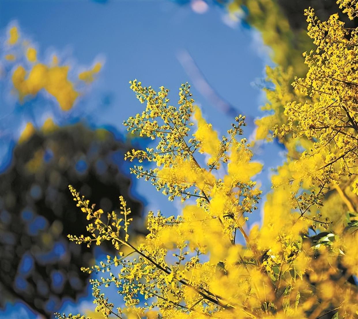 園博苑里,欒樹為步道綴上繽紛色彩。