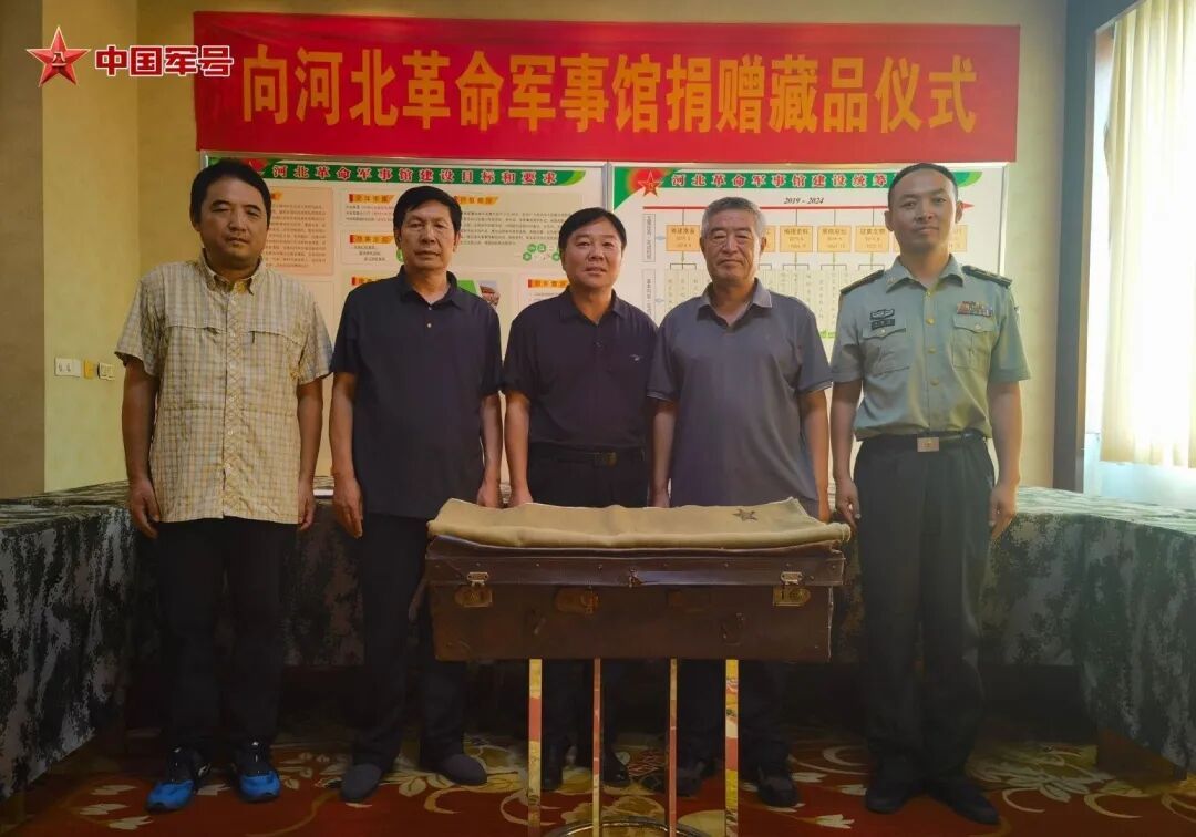2024年8月1日,李斌(左三)向河北革命軍事館捐贈外公賴官宜烈士的遺物。