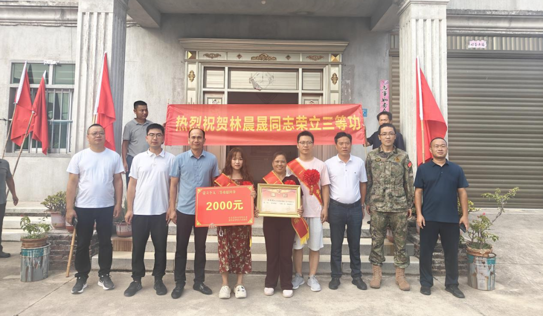 秀嶼區(qū) 林晨晟榮立三等功 近日,莆田市秀嶼區(qū)退役軍人事務(wù)局、區(qū)人武部聯(lián)合埭頭鎮(zhèn)村工作人員組成慰問組,為榮立三等功的現(xiàn)役軍人林晨晟家庭送去立功喜報(bào),共同慶祝這一榮耀時(shí)刻。