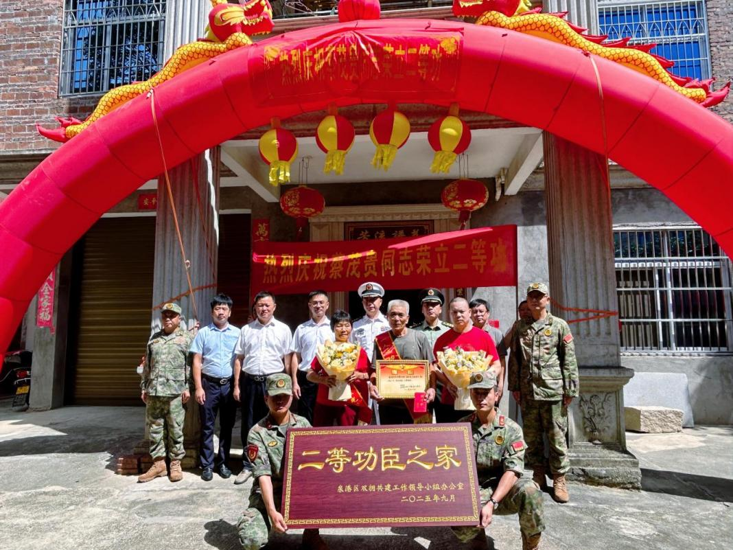 活動(dòng)現(xiàn)場,氣氛熱烈,泉港區(qū)人武部部長何晨凡現(xiàn)場宣讀了蔡茂貴同志二等功喜報(bào),泉港區(qū)政府副區(qū)長朱添洪鄭重地為蔡茂貴父母佩戴綬帶、送上鮮花,泉港區(qū)委常委、區(qū)人武部政委熊洪向蔡茂貴父母送上立功慰問金。在熱烈的掌聲中,送喜報(bào)隊(duì)伍還為蔡茂貴家屬送上“二等功臣之家”牌匾,黨和政府對功臣及其家屬的關(guān)懷和敬意,傳遞到現(xiàn)場每個(gè)人的心中,鄰里鄉(xiāng)親們紛紛投來贊許的目光,為這份榮耀感到由衷的自豪。