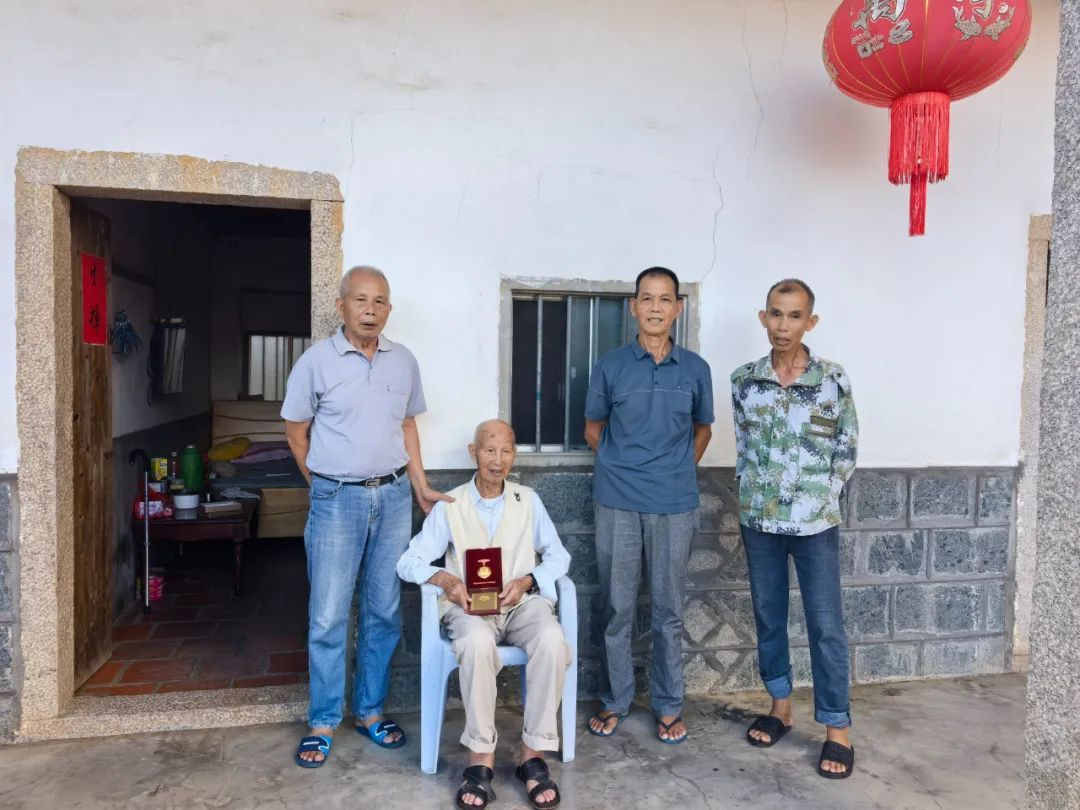 1945年,蔡友琳隨軍參加閩東追擊戰(zhàn),一心盼著戰(zhàn)爭早日結(jié)束。抗戰(zhàn)勝利的消息傳來,整個駐地歡騰一片,“大家都希望可以過太平日子了”。部隊改編后,蔡友琳選擇離開軍隊,在廈門短暫工作。1949年,思鄉(xiāng)心切的蔡友琳步行回到長泰老家務(wù)農(nóng),終于迎來安穩(wěn)的生活?!拔揖鸵宦纷呋丶?,肚子實在餓得不行,就向沿途的人家討點吃的?!边@條返鄉(xiāng)路,他走得艱難,卻滿懷希望。 回鄉(xiāng)后,蔡友琳結(jié)婚生子,子女孝順,家庭和睦。如今老人身體尚可,只是聽力有些下降。自2015年5月起,蔡友琳開始接受公益基金助養(yǎng)金資助。社會的關(guān)懷如涓涓細流,溫暖著這位曾為國家奮戰(zhàn)的老兵。2015年,蔡友琳獲頒“中國人民抗日戰(zhàn)爭勝利70周年”紀念章;十年后,又一枚紀念章承載著時代的敬意,佩戴在他的胸前。 “戰(zhàn)爭是極其殘酷的,和平就是最大的幸福?!边@是蔡友琳常掛在嘴邊的話,也是他一生最深刻的領(lǐng)悟。 從戰(zhàn)火紛飛到安居樂業(yè),從硝煙彌漫到村莊寧靜,他的人生猶如一部行走的歷史書,見證著一個國家從苦難走向復興的偉大歷程。長泰區(qū)、鎮(zhèn)領(lǐng)導時常前來探望,關(guān)心他的身體和生活,聆聽他講述抗戰(zhàn)往事?!翱箲?zhàn)老兵是民族的脊梁,是歷史的見證者,”長泰區(qū)領(lǐng)導表示,“他們的英勇事跡和愛國精神值得永遠銘記與傳承。我們將繼續(xù)做好參戰(zhàn)老兵的關(guān)懷工作,嚴格落實優(yōu)撫政策,讓英雄安享晚年。”
