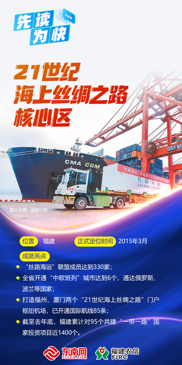 如今,海絲核心區(qū)“福建號”通達四方。“絲路海運”命名航線已達122條,通達全球46個國家和地區(qū)的135座港口,成為全球業(yè)界共享繁榮的重要平臺;在陸運方面,全省開通“中歐班列”城市達到6個,通達俄羅斯、波蘭等國家,實現(xiàn)陸海內(nèi)外聯(lián)動、東西雙向互濟;空中通道更加便捷,“絲路飛翔”扎實建設,福州、廈門兩個“21世紀海上絲綢之路”門戶樞紐機場等一批重大互聯(lián)互通項目陸續(xù)推進,85條國際航線通達全球主要城市。[詳細]