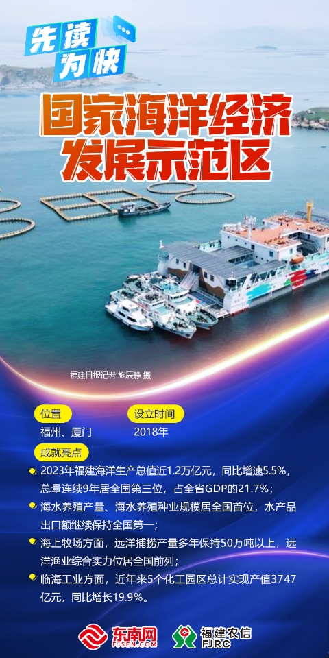 多年來,福建充分發(fā)揮海洋資源的獨特優(yōu)勢,推出一批有特色、具實效的舉措,掀起了一股逐夢“深藍”的強勁浪潮。數(shù)據(jù)顯示,2023年福建海洋生產(chǎn)總值近1.2萬億元,同比增速5.5%,總量連續(xù)9年居全國第三位,占全省GDP的21.7%;水產(chǎn)品總產(chǎn)量890萬噸,居全國前三;海水養(yǎng)殖產(chǎn)量、海水養(yǎng)殖種業(yè)規(guī)模居全國首位,水產(chǎn)品出口額繼續(xù)保持全國第一。[詳細]