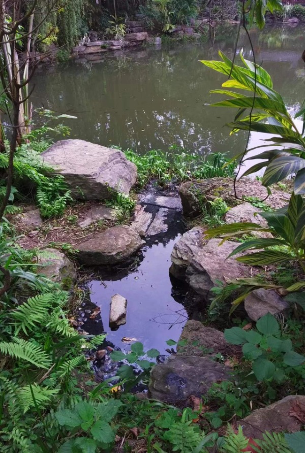 水井與人工湖銜接處,水體和石頭發(fā)黑 “這里的水原本是非常清澈的,清明節(jié)的大雨之后就變成了這樣?!爆F(xiàn)場(chǎng),一位穿著紅馬甲的工作人員告訴記者,公園上方有居民區(qū),懷疑是暴雨破壞了居民區(qū)的管道,維修時(shí)錯(cuò)將污水管接到了雨水管上,或者是污水管爆裂滲透,污染了井水所致。 屏山公園現(xiàn)場(chǎng)管理人員表示,湖水確是清明節(jié)后變黑的,原因正在排查。據(jù)介紹,當(dāng)時(shí)井里流出的臟水泛著白色浮沫,湖里的錦鯉都死了幾十條。公園管理中心立即報(bào)告了環(huán)保、建設(shè)、水務(wù)、街道等部門,并做了緊急處置,對(duì)湖體進(jìn)行沖洗,逐步換水,并排查污水源頭。上周,相關(guān)單位前來提取了水樣,目前尚未告知結(jié)果。 當(dāng)日,記者就此事聯(lián)系了福州市生態(tài)環(huán)境局。17日,福州市建設(shè)局相關(guān)負(fù)責(zé)人聯(lián)系記者稱,該局接到市生態(tài)環(huán)境局的反映,已讓屬地工作人員到現(xiàn)場(chǎng)查看,鼓樓區(qū)園林中心作為管理單位正在排查原因。18日,福州市生態(tài)環(huán)境局相關(guān)負(fù)責(zé)人林先生答復(fù)記者稱,鼓樓區(qū)生態(tài)環(huán)境局多次到現(xiàn)場(chǎng)排查,福州市生態(tài)環(huán)境局也對(duì)接了建設(shè)及園林部門,明確是鼓樓區(qū)園林中心的管轄范圍,該局將積極配合。 鼓樓區(qū)園林中心工作人員表示,該中心已聯(lián)合環(huán)衛(wèi)、建設(shè)部門,正在全力查找源頭、治理問題。通過一段時(shí)間的緊急處置,污染情況已有所改善。不過,近兩日再次下雨后,又有污水滲出,該中心正在沿著井下一處污水管查找源頭,希望能盡快恢復(fù)水質(zhì)。