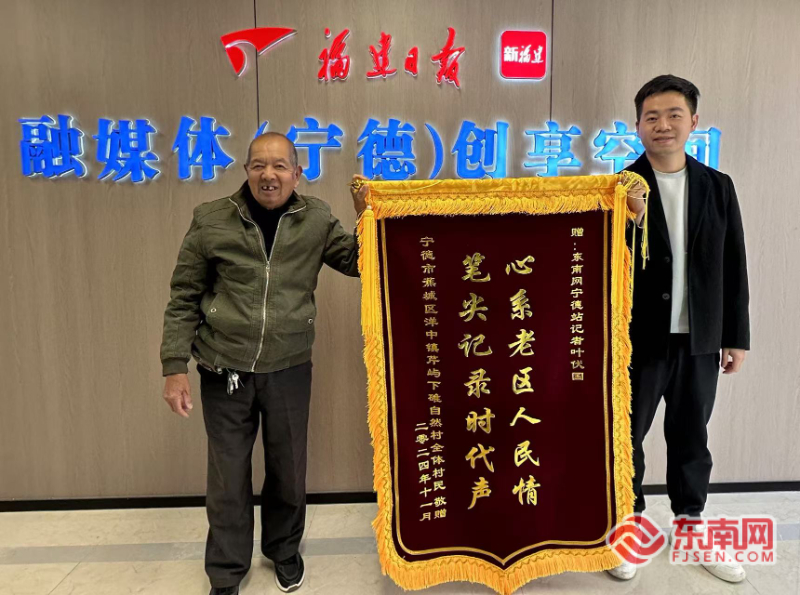 村民劉大爺為記者送錦旗。東南網(wǎng)記者 周濤 攝 莆田涵江萩蘆鎮(zhèn)的潭井橋,在2023年臺風(fēng)“杜蘇芮”之際被沖毀,村民出行需繞行5公里小道。為解決出行難問題,政府牽頭修建,省、市補助資金,村民積極捐款180萬元。不料,村民的捐款用完了,省、市補助的資金還在區(qū)政府手上“走流程”,造成已接近完工的大橋停工?!吨蓖ㄆ辽健凡稍L報道《村民捐資180萬 莆田涵江潭井橋完工在即為何停工?》,推動當?shù)刂匾暯鉀Q,新橋建設(shè)重新啟動。