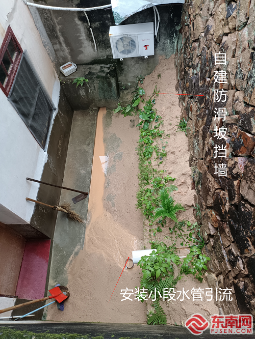 受臺(tái)風(fēng)影響居民房屋后發(fā)生山體溜方。受訪者供圖
